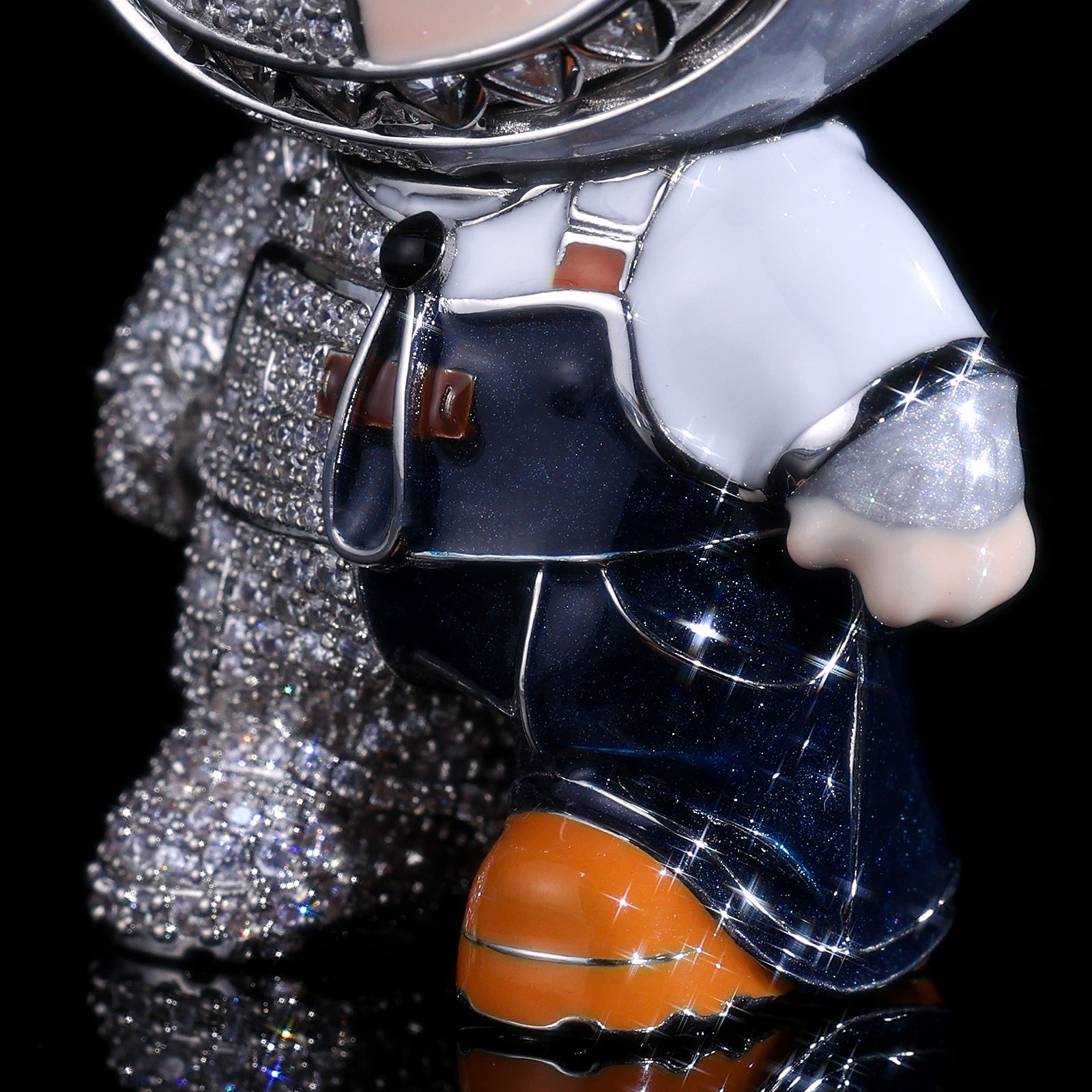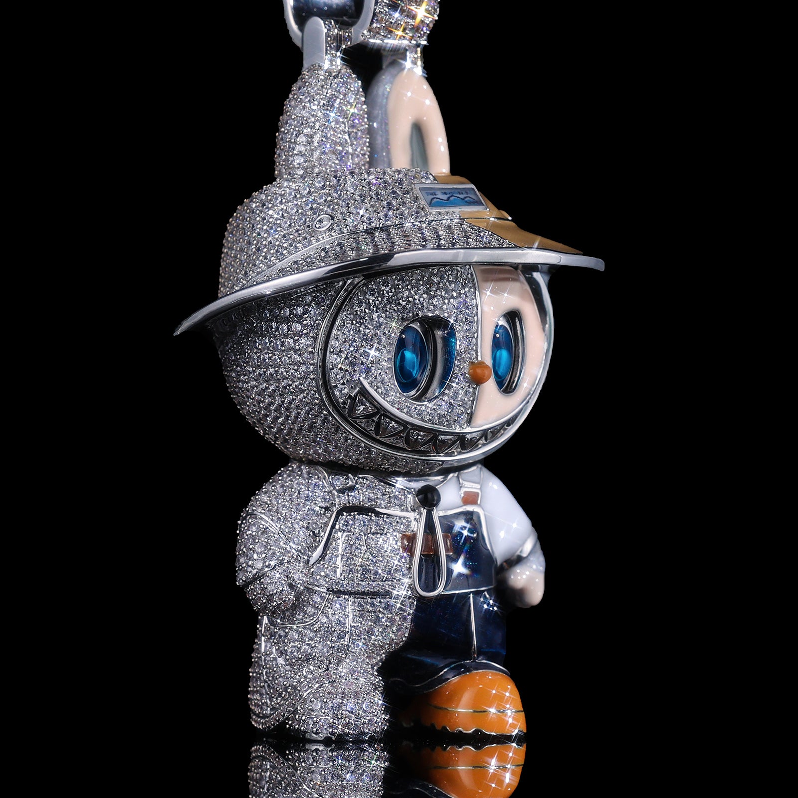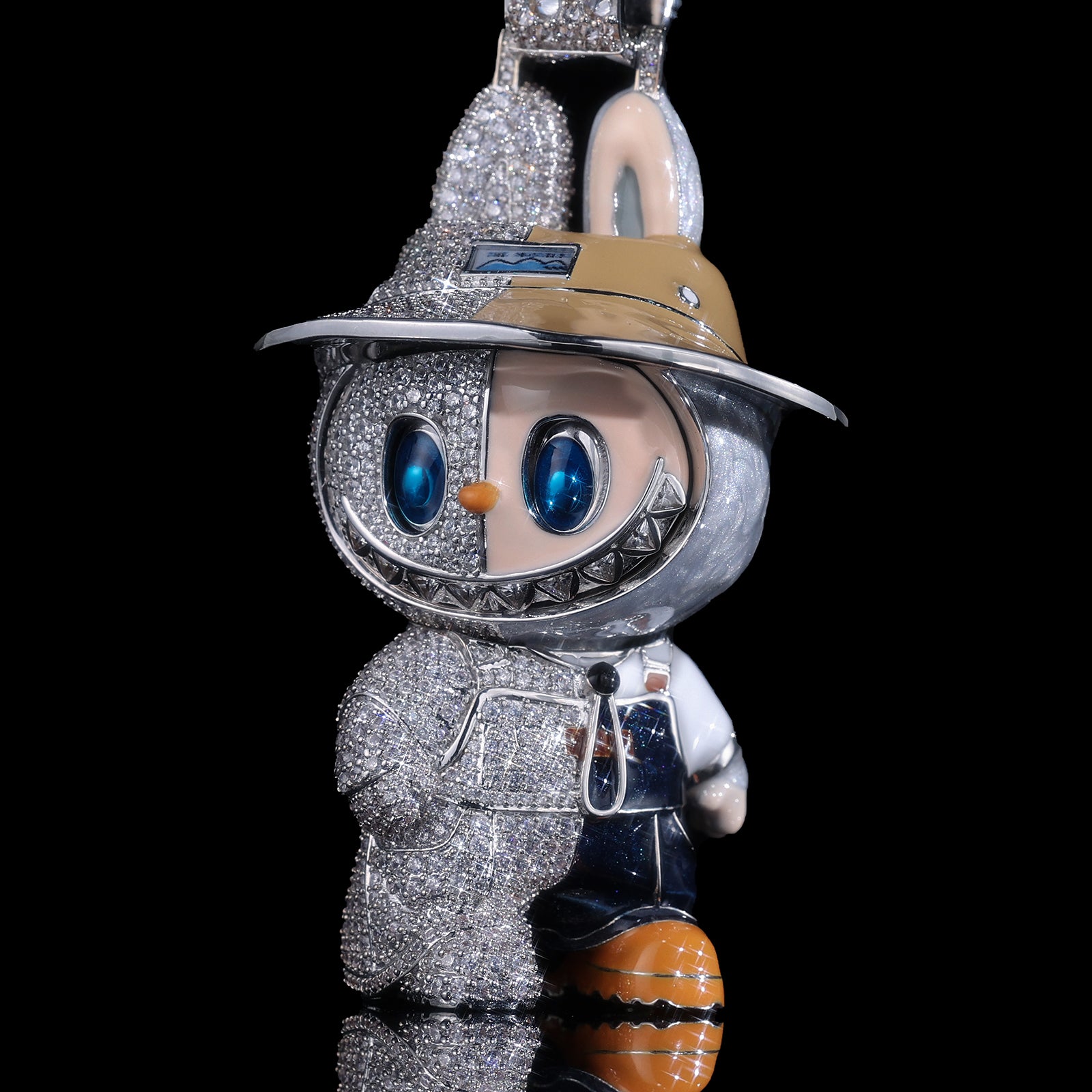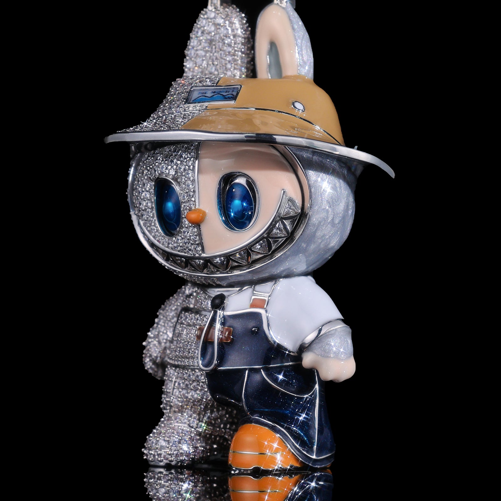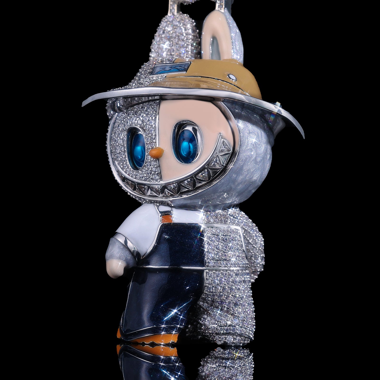 This Labubu bling pendant features a unique split-design: one side showcases meticulous hand-painted enamel work, while the other is drenched in high-clarity micro-pave stones. It’s a 3D masterpiece that captures every mischievous detail of the iconic character.
